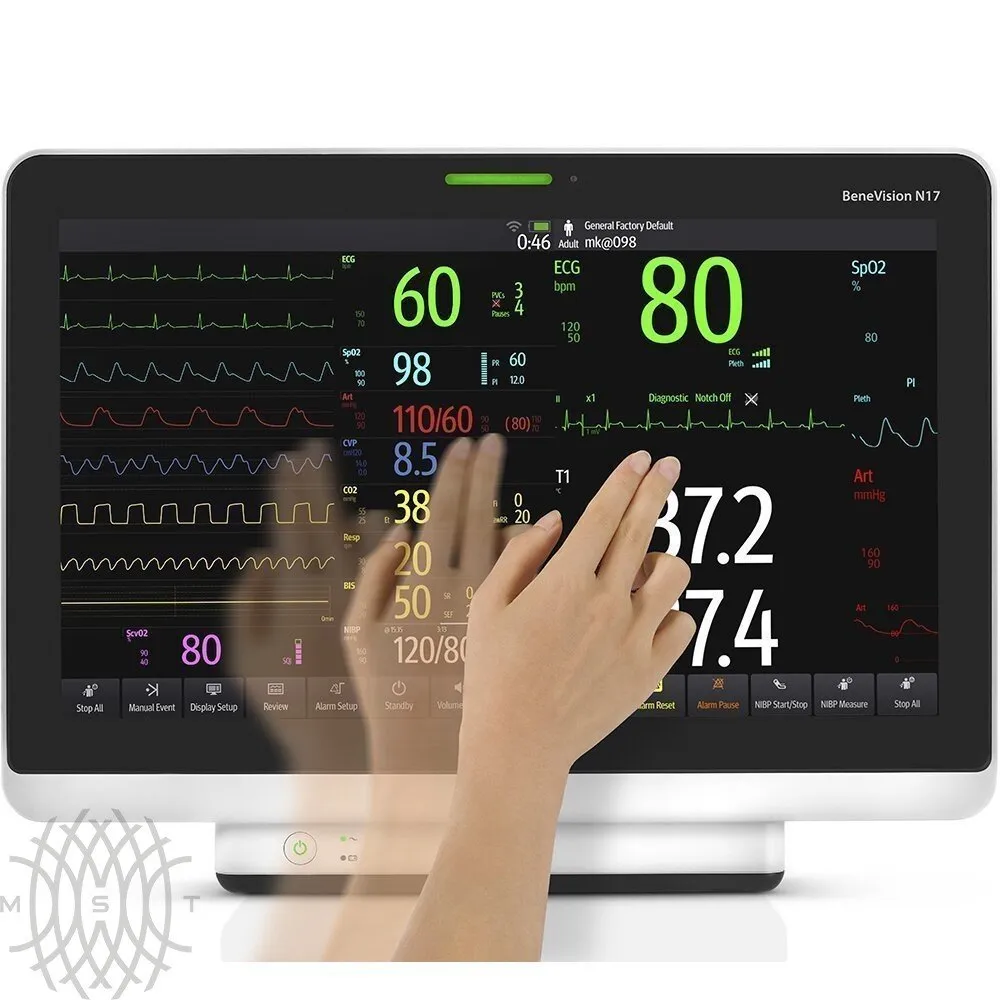 BeneVision N17 — многофункциональный монитор пациента с ярким и контрастным дисплеем. Монитор можно использовать в операционных, в отделениях реанимации и интенсивной терапии, а также для наблюдения за больными кардиологического профиля. Его можно подключать к центральной станции медицинского учреждения для многопараметрического мониторинга как в палате, так и во время транспортировки.