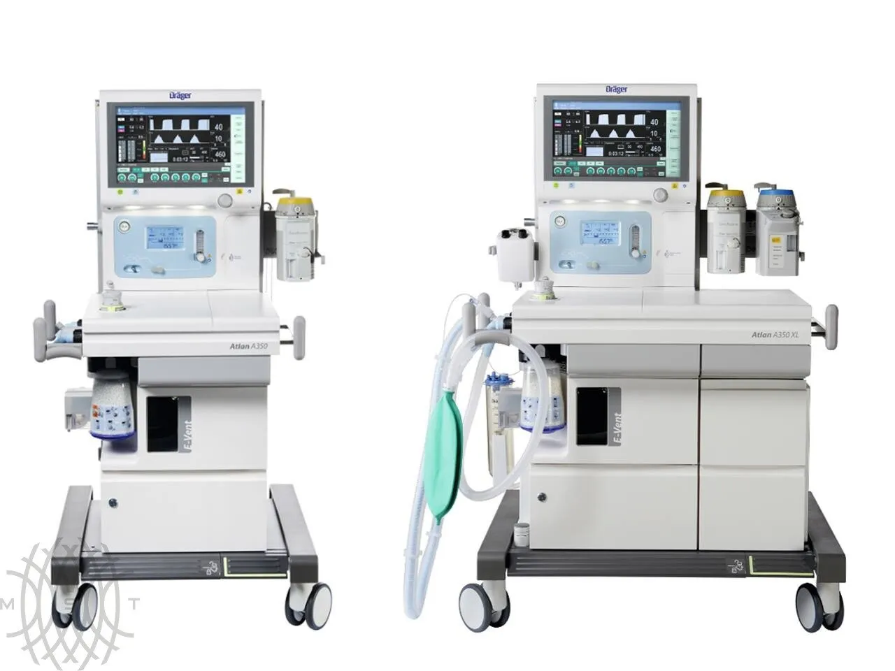 Компактная модель Atlan A350 имеет модификацию A350XL. Она оснащена 3 ящиками с замком вместо 1 и имеет более широкое основание. Для нее не предусмотрено потолочное и настенное крепление, однако, ее можно так же, как и Atlan A350 дополнять различными системами (Такими как Infinity® Acute Care System, Infinity Delta XL и Dräger SmartPilot® View).