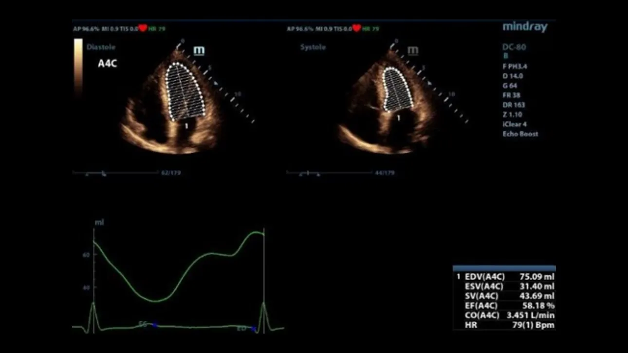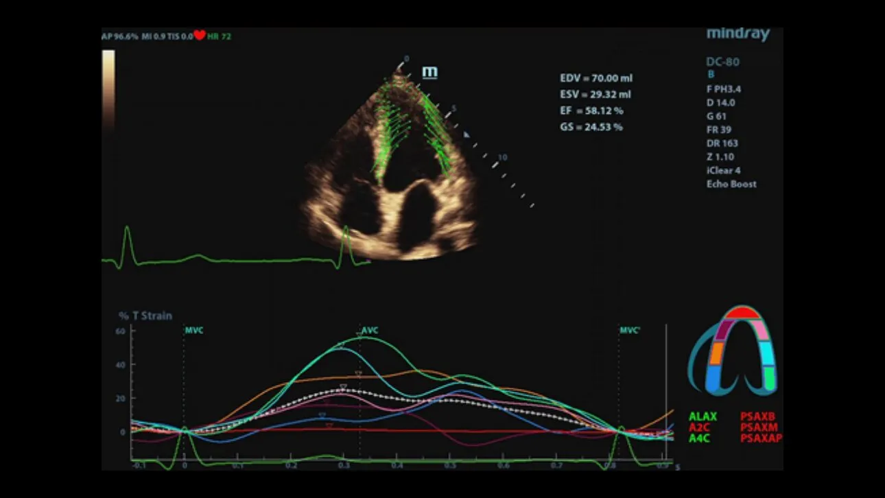 Mindray DC-80 поддерживает все виды эластографии, предоставляет для работы полный пакет режимов для кардиологии и специализированных расчетов. Например, опция Free Xros M дает возможность исследовать под углом сердечную мышцу с одновременным анализом нескольких направлений, а приложение STIC позволяет получать 3-х мерное изображение сердечной мышцы плода с высоким разрешением и максимумом частоты кадров.